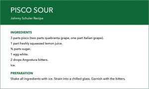 Schuler, a Peruvian writer and owner of two major restaurants in Lima—Key Club and La Granja Azul— is also a television personality, an authority on pisco, and the founder of the Tasters Guild of Peru. A charismatic man, Johnny Schuler did not hesitate, for a second, to put forth the virtues of this aromatic, elegant beverage, which he includes in the same league as cognac or sherry. His tireless efforts to promote the heritage, culture and craftsmanship that make pisco so unique earned him the Medal of Honor by the Peruvian Congress.